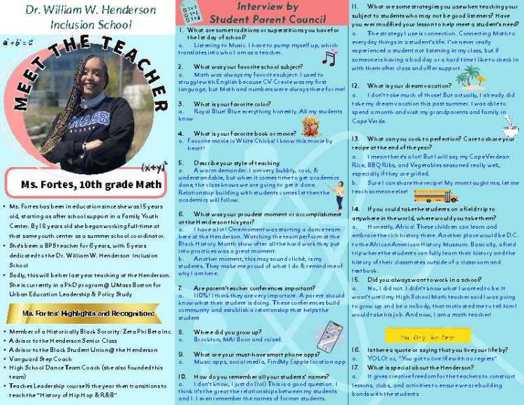 As part of the SPC’s “Henderson Stories” project, Nykiya Smith interviewed Ms. Natasha Fortes, an inspiring math teacher who has also coached the high school dance team and taught classes in leadership class and the History of Hip Hop and R&B, among the many ways she has supported Henderson students. Click here to see the complete interview.